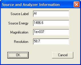 Other information often missing for data converted via X/Y pair ASCII files relate to the X-ray anode type (Source Label), photon energy (Source Energy), electron optics magnification and pass energy of retard ratio (Resolution). Again, these values can be assigned to the current selection of VAMAS blocks in the Experiment Frame, however when assigning a new x-ray source, be sure all the spectra selected have the same Magnification and Resolution settings.